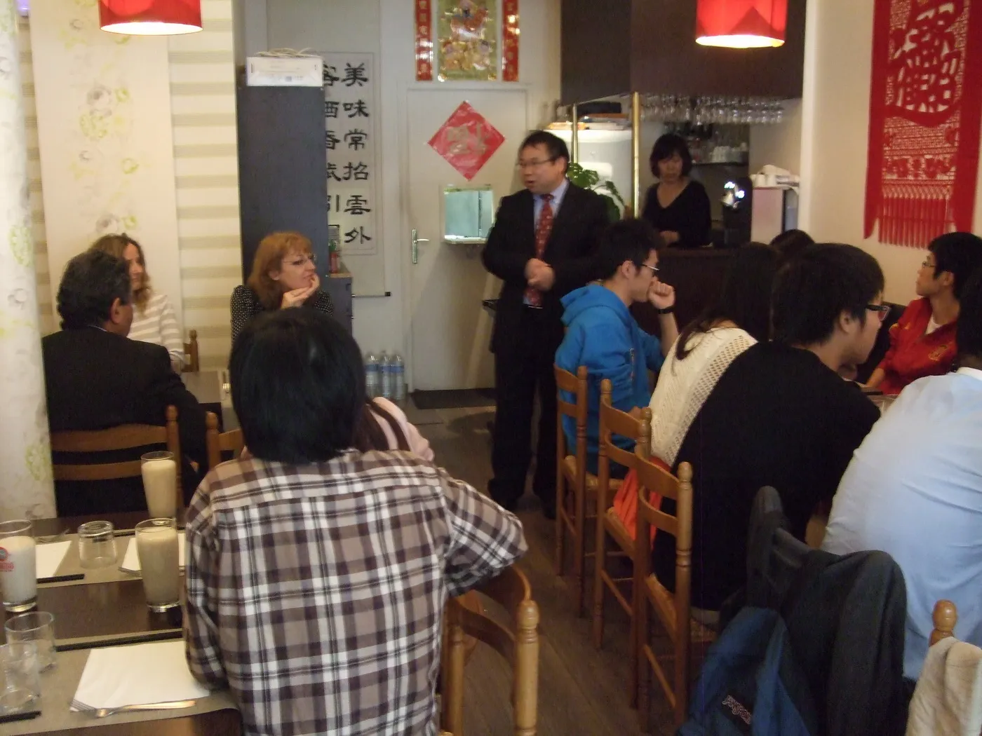 6月18日13点,Pole ESG巴黎高管暑期预科班的15位新生课后与老师一起相聚在学校附近的“吉丽雅”北京餐馆。参加此次聚餐活动的老师有Mme TOUSSAINT, Mme BENHAMOU, Mme SAUSSURE-YOUNG, M. ZAKI , M. JI。