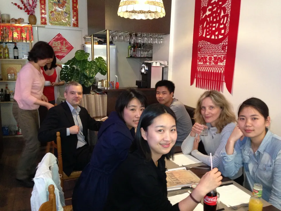 6月17日13点,11位同学课后与老师一起相聚在学校附近的“吉丽雅”北京餐馆聚餐。参加此次聚餐活动的老师有Mme TOUSSAINT, M. ZAKI, M. BELOT, M. JI及MBA ESG 实习生Mlle SI Jingjing。