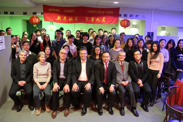 STUDIALIS 思图迪集团国际部主任Didier BOUVET、MBA ESG学院院长Alain KRUGER,法中管理学院院长邱博士,法语预科中心的法语老师M. J-F BELOT,M. Guy SCHULDER,Mme. VANDOMEL应邀参加晚会,与大家一起共度元宵佳节。