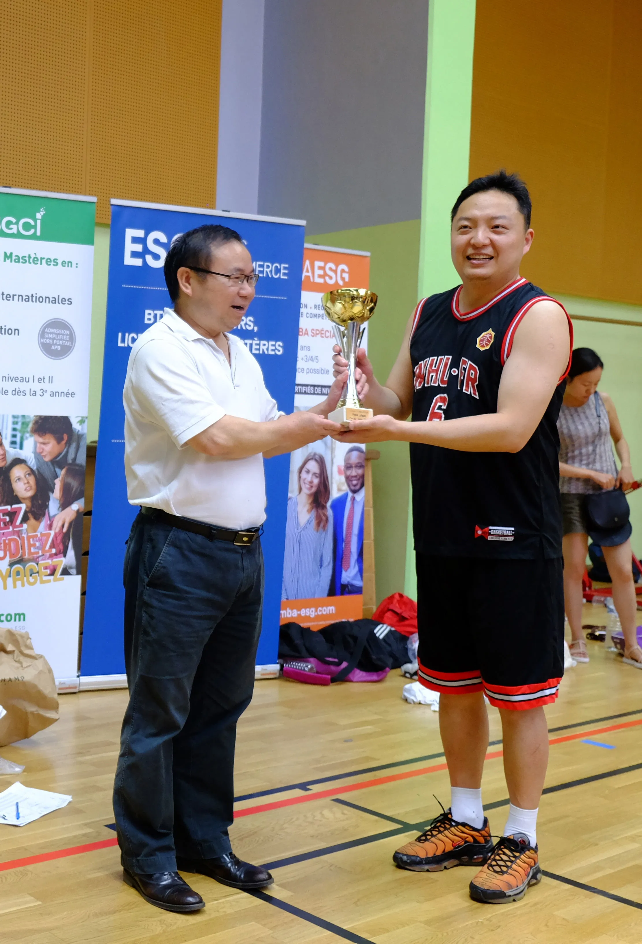 MBA ESG 硕士研究生、FCBA篮协队员、FFBB官方正式裁判杨浥尘圆满执判了全部四场比赛。来法国访学的艺术家陈一鸣教授为此次杯赛的预赛和决赛摄影录像,ESG法中管理学院、ESGCI校友石雯同学为决赛及颁奖仪式拍下许多精彩的镜头。在此向他们表示衷心的感谢。