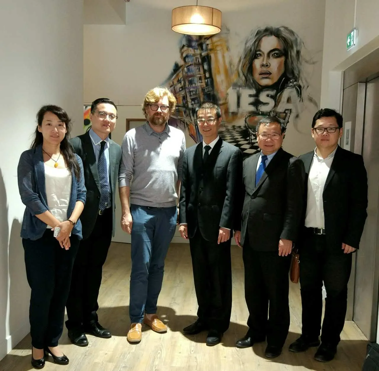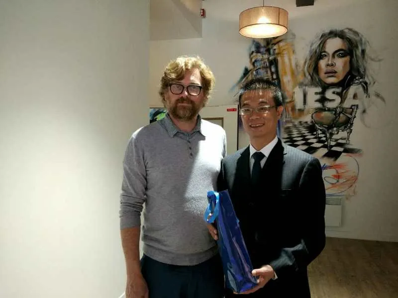 最后,在邱博士、吉老师的陪同下,吴董事长一行访问了位于巴黎第十一区校区装修工程处在收尾阶段的IESA 巴黎高等文化艺术学院。受到IESA校长鲍里斯.格雷比耶Boris GREBILLE先生、IESA亚洲部负责人周娟女士的热情接待。
