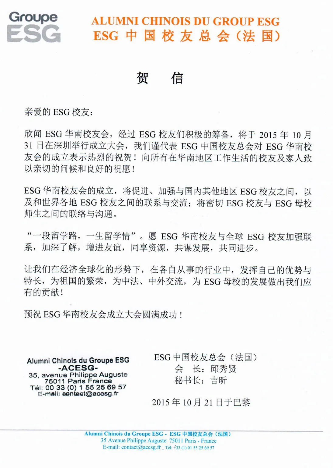 祝贺ESG华南校友会成立