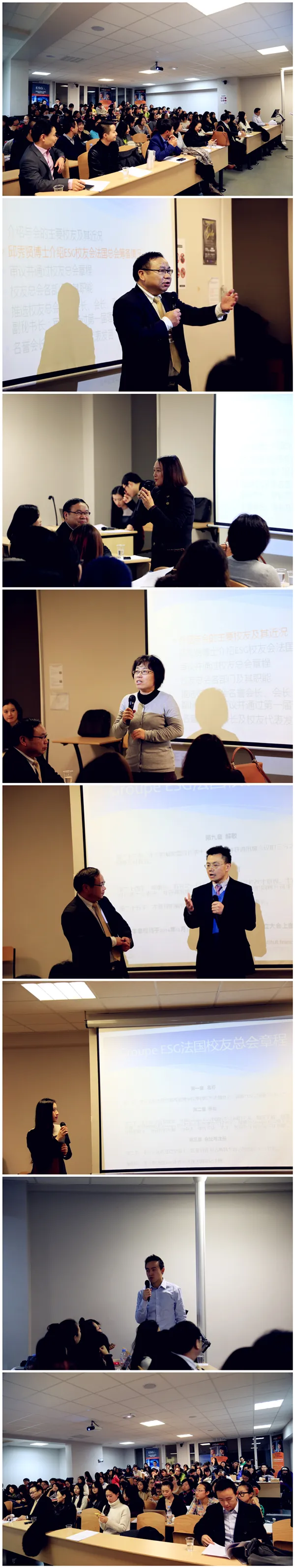 12月3日傍晚,Groupe ESG校友会法国总会成立大会在巴黎第十一区Philippe Auguste MBA校区阶梯教室隆重举行。参加大会的有Groupe ESG学院集团各学院的历届优秀毕业生和在读的学生共130多人。