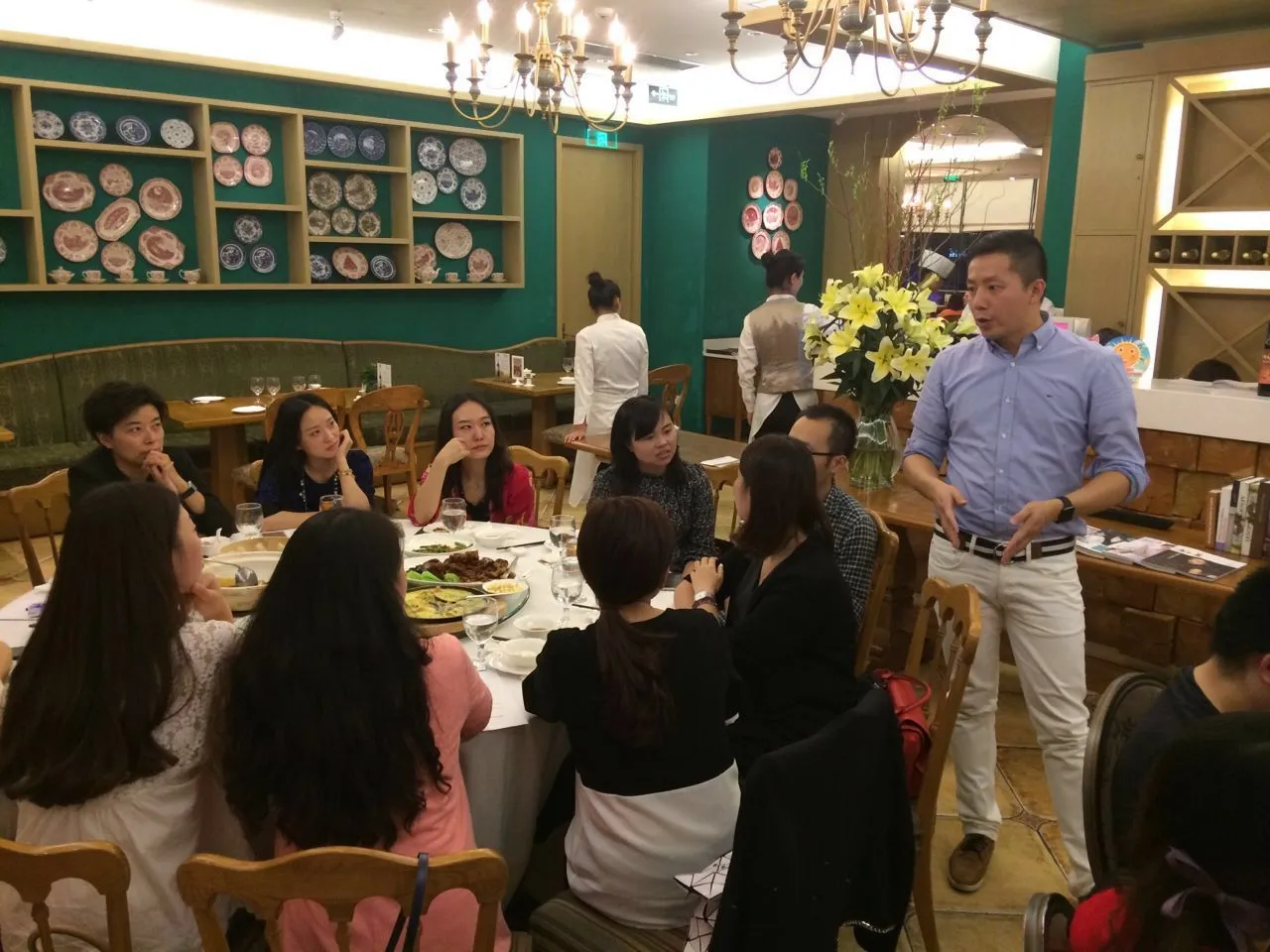 2015年10月23日星期五,各位校友在傍晚陆续到达上海长宁区高岛屋上海会馆,参加ESG华东校友会成立大会。在各位优秀校友们就餐前,大家互相自我介绍,并分享了现今生活、工作状况及对ESG学业经历的温馨回顾。邱老师与吉老师热情介绍了多年来ESG的发展及变化,以及ESG现今的各项目招生情况。