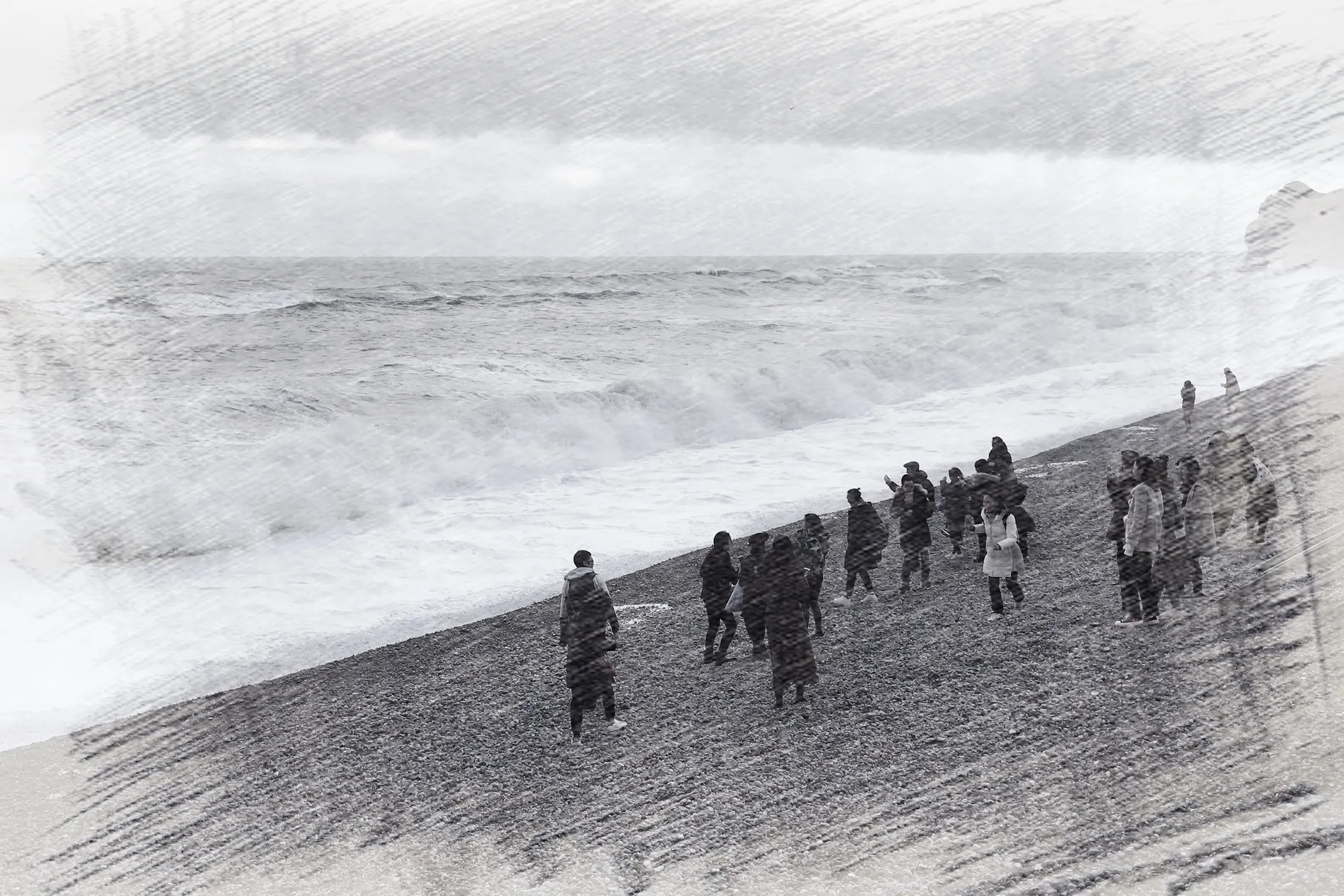 就在这欢声笑语中,我们到了目的地。出发前的一整周,老师们都悬着一颗心,担心淘气的老天会在我们到达的时候下雨,没想到诺曼底却用它独特的阳光,来迎接我们这批“朝圣者”。连司机师傅都忍不住连连感叹:vous avez de la chance~~ 三个多小时车程后,当同学们看到大海时,都忍不住被这壮阔之景震撼,不淡定地冲下去拥抱她~一张有爱的大合照后,大家就开始各自行动了~