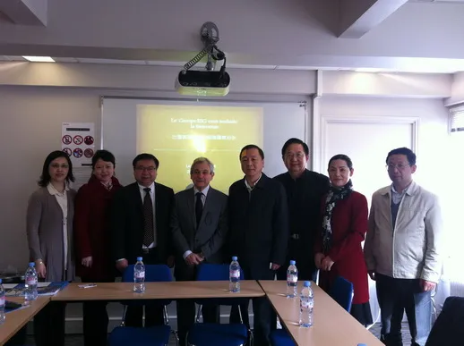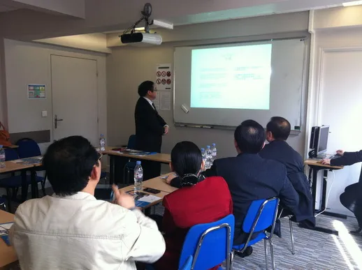 乔治.尼尔丹博士首先对李主任及其代表团成员的院长主任们的来访表示热烈欢迎,谈话中尼尔丹博士提及对中国教育未来前景十分看好,希望能进一步加强中法交流。亚洲关系部主任邱秀贤博士详细地为代表团介绍了Groupe ESG集团学院旗下的5所校区及其概况后,双方很快进入了合作项目的洽谈,围绕今后在学生交流、资源共享,设立开办教师培训班、共同合作建立开设学士或硕士实用课程等多个主题进行了广泛深入的交流。