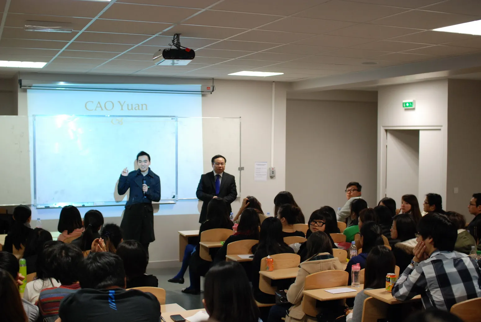 会议由Pôle ESG亚洲关系负责人、预科中心主任邱秀贤博士主持,他首先对2012年春季1月/2月份入学的专业按学院逐一进行了介绍,然后又对学校的文凭以及在校期间学院对实习的要求向同学们作了详细的解释。