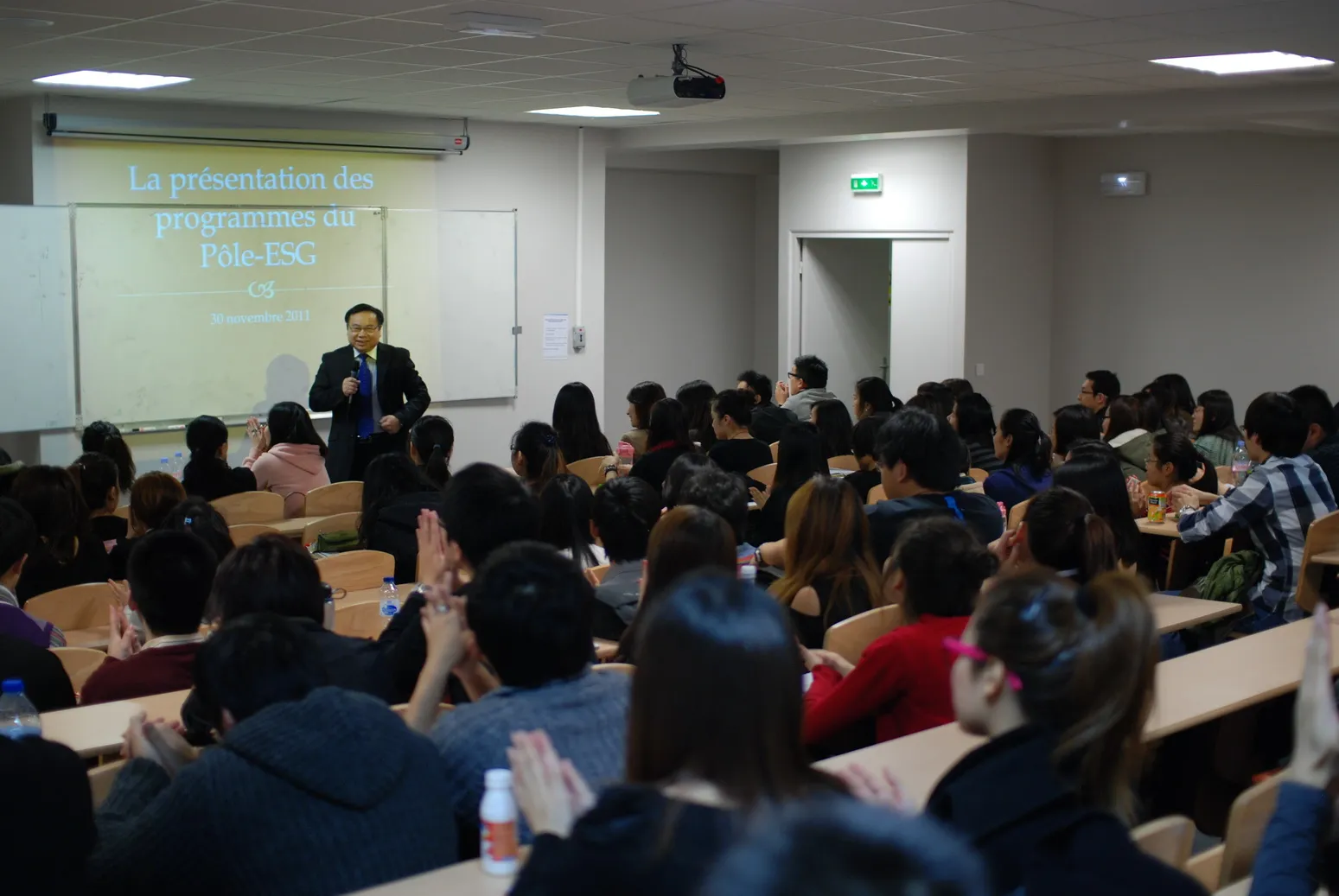 2011年11月30日下午,Pole-ESG法中管理学院1学期1度的预科同学专业选择介绍会如期Philippe Auguste校区阶梯课室举行。此次会议旨在帮助希望春季进入专业学习预科同学能够选择适合自己的专业及年段。PF,PF1A,PF1B三个班级近百名同学踊跃参加了此次介绍会。