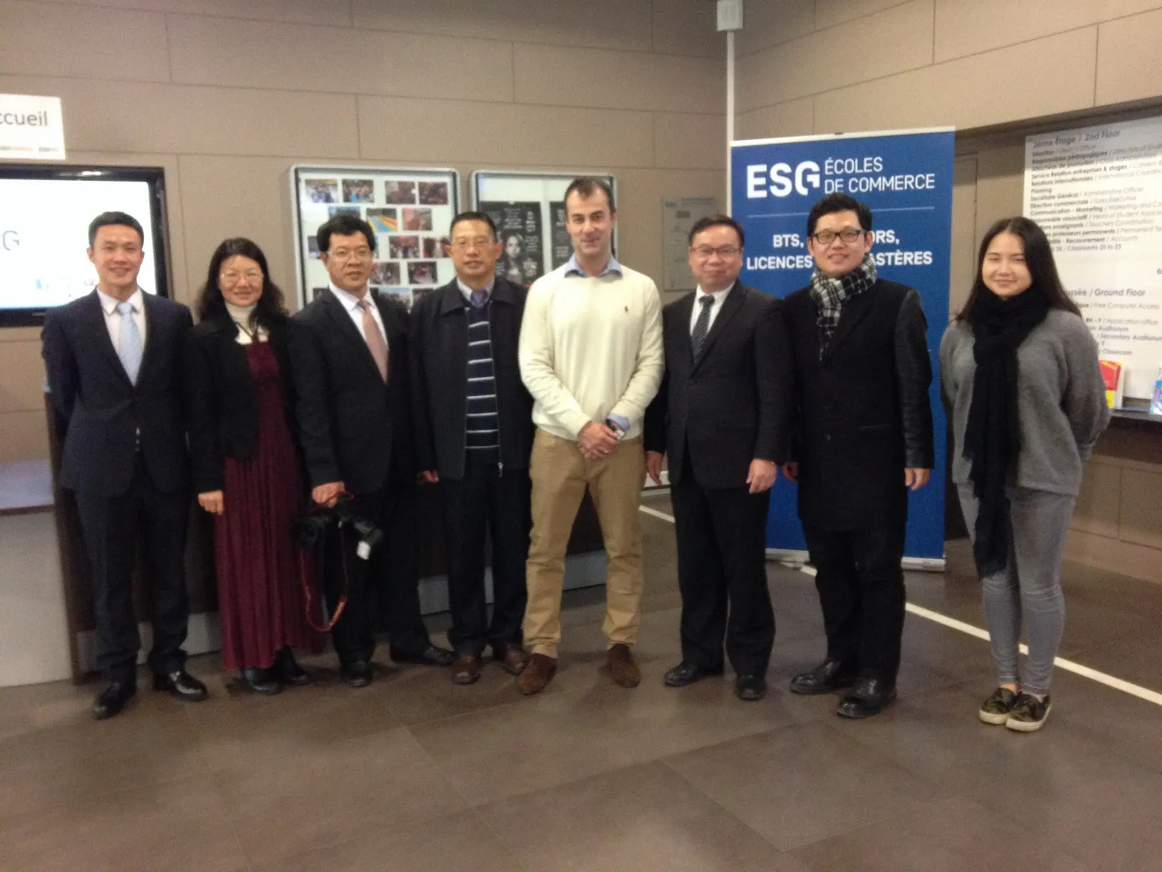 以职教研究所所长李建求教授为团长的深圳职业技术学院代表团一行4人今天上午到访思图迪教育联盟ESG学院集团。在Saint Ambroise校区,受到ESGCI国际商贸学院、ESGF金融学院及ESGRH人力资源管理学院院长奥利维埃.赛尔克先生、亚洲关系部主任兼、法中管理学院院长邱秀贤博士、亚洲事务主管兼副院长吉昕老师的热情接待。