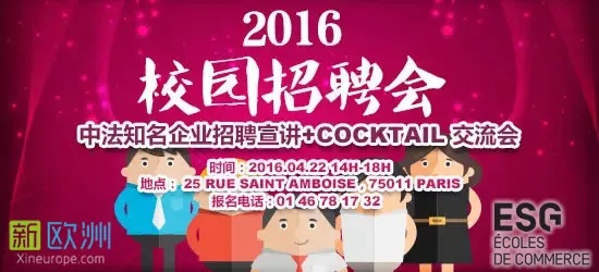 4月22日周五下午,2016年校园招聘会在ESG巴黎高等管理学院Saint-Ambroise校区隆重召开。