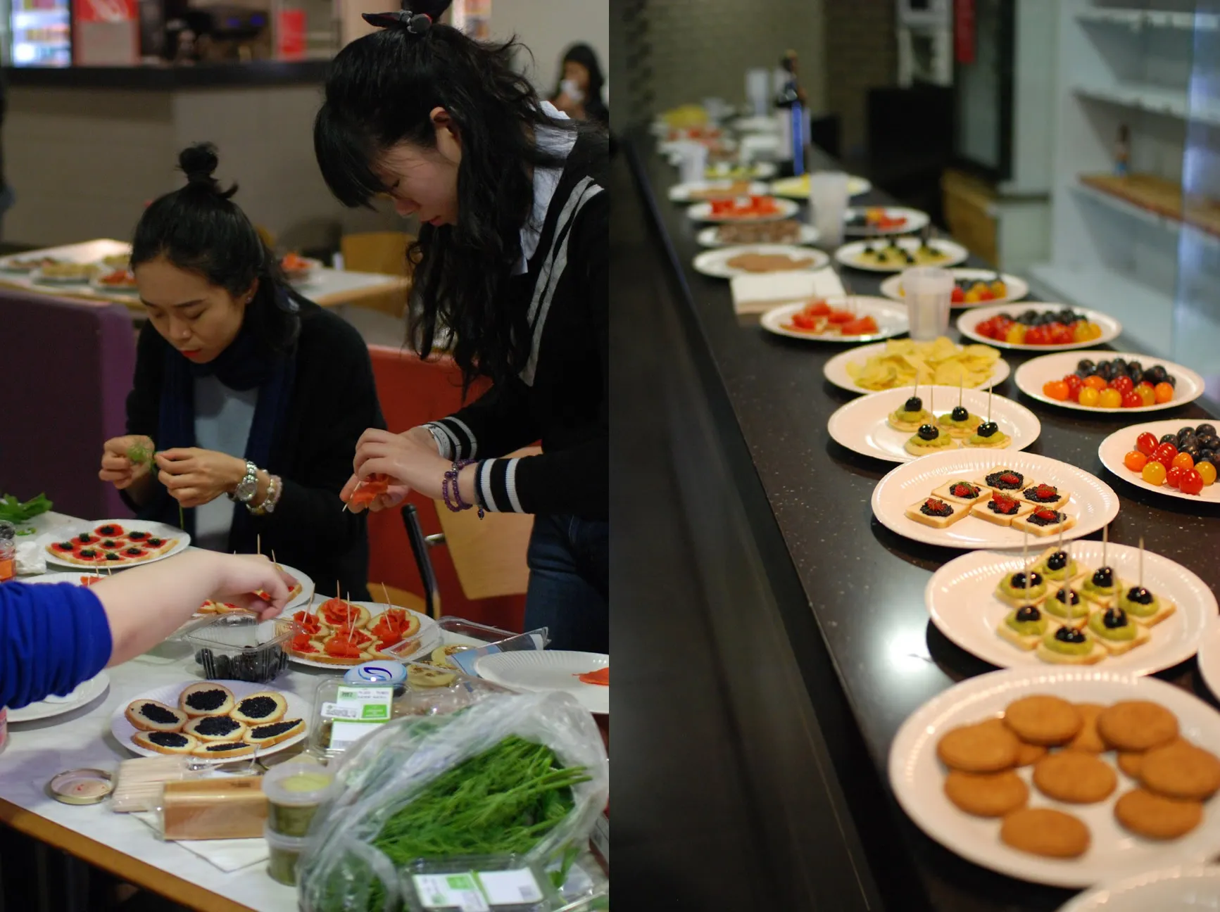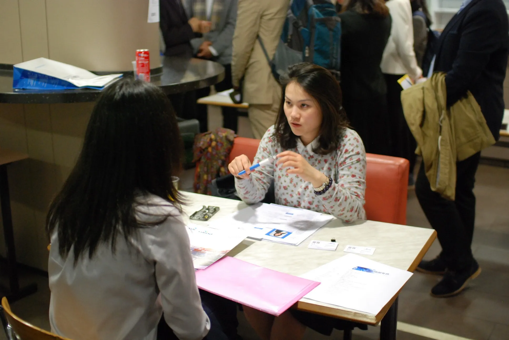 之后的环节是鸡尾酒和交流会。期间气氛异常火爆,估计上百名学生前来咨询与提交简历,大大超出想象。同学们对招聘企业表现出了浓郁的兴趣,踊跃参与讨论提问,上述企业的展台前均排着长队,大厅里热闹非凡。招聘会下午2点开始,晚上近7点方结束。