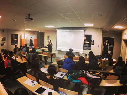 ESG法中管理学院于2月23日周二晚在巴黎11区Philippe Auguste校区举行了“希客小黑裙全球巡回演讲——巴黎站”的活动。此次演讲由Chic Design希客小黑裙品牌创始人、CEO、:MBA ESG校友吴玲玲女士主讲,在阶梯教室法中管理学院预科的60余名同学及老师参加了当天的活动。