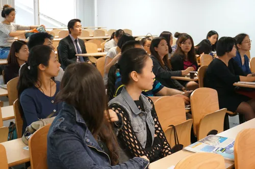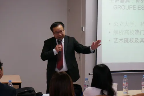 整个活动在掌声连连与频繁互动中进入了第二环节,这一环节由Groupe ESG学院集团亚洲部负责人邱秀贤博士作为主讲,邱博士顺应现场气氛,灵活变换了演讲方式,抛开一些条条框框的介绍,也从自身“老留学生”的经历与经验入手,与大家共同探讨选择学校与专业时需要考虑到的问题。概括地讲,选择专业一方面要结合兴趣爱好,倘若选择了一个自己都不感兴趣的专业,又怎么可能把它学好呢?另一方面要符合职业规划,学习的目的是在充实自己的同时能够做到学以致用。