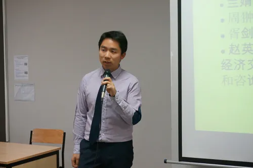 随后,就职于中国银行巴黎分行的胥剑平先生凭借幽默风趣的演讲风格把现场的气氛推向了小高潮,他以“毕业后是否要留在法国”这个议题展开,对比了中资企业与法资企业的优缺点,结合自身在职场中的人生转型,综合分析了留在法国工作的利与弊。
