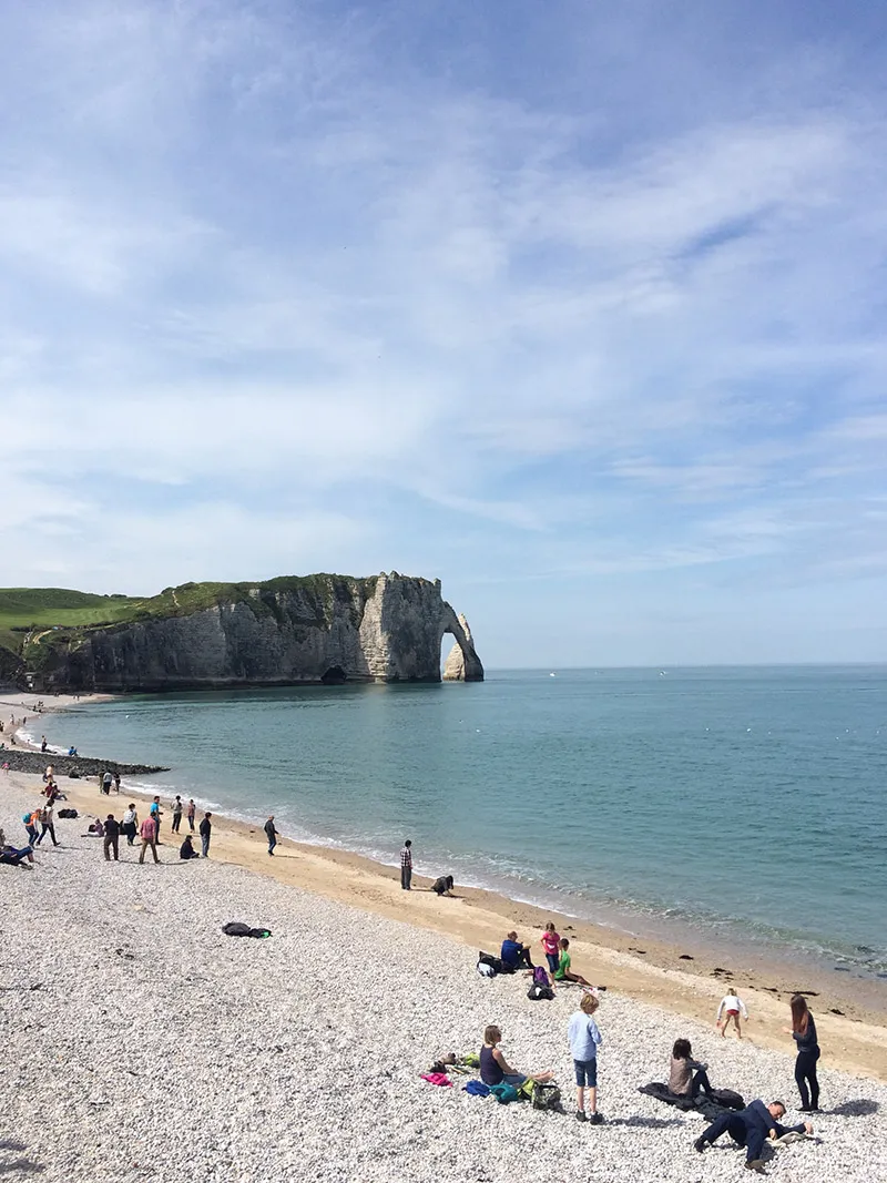 按照时间先后顺序,先说说我们旅行第一站 - 象鼻山。象鼻山是上诺曼底省沿着英吉利海峡的小镇,这里是印象主义画派发展的心脏地区。这里山水美丽奇特,许多著名印象派画家譬如莫奈也曾一度从不同角度为它挥洒笔墨,创作的画作竟有80幅!传说中的象鼻山,不是悬崖峭壁,险峻山峰,而是坐落在这片海湾上的几座岩石。随手拍下母象山,任何一个角度都是带给人们不同的美感。这儿游客非常多,星期五的天气也是美极了,随处海边嬉戏玩耍的年轻人,享受恬静下午茶的情侣,以及背着相机感受大自然的奇妙的游客。