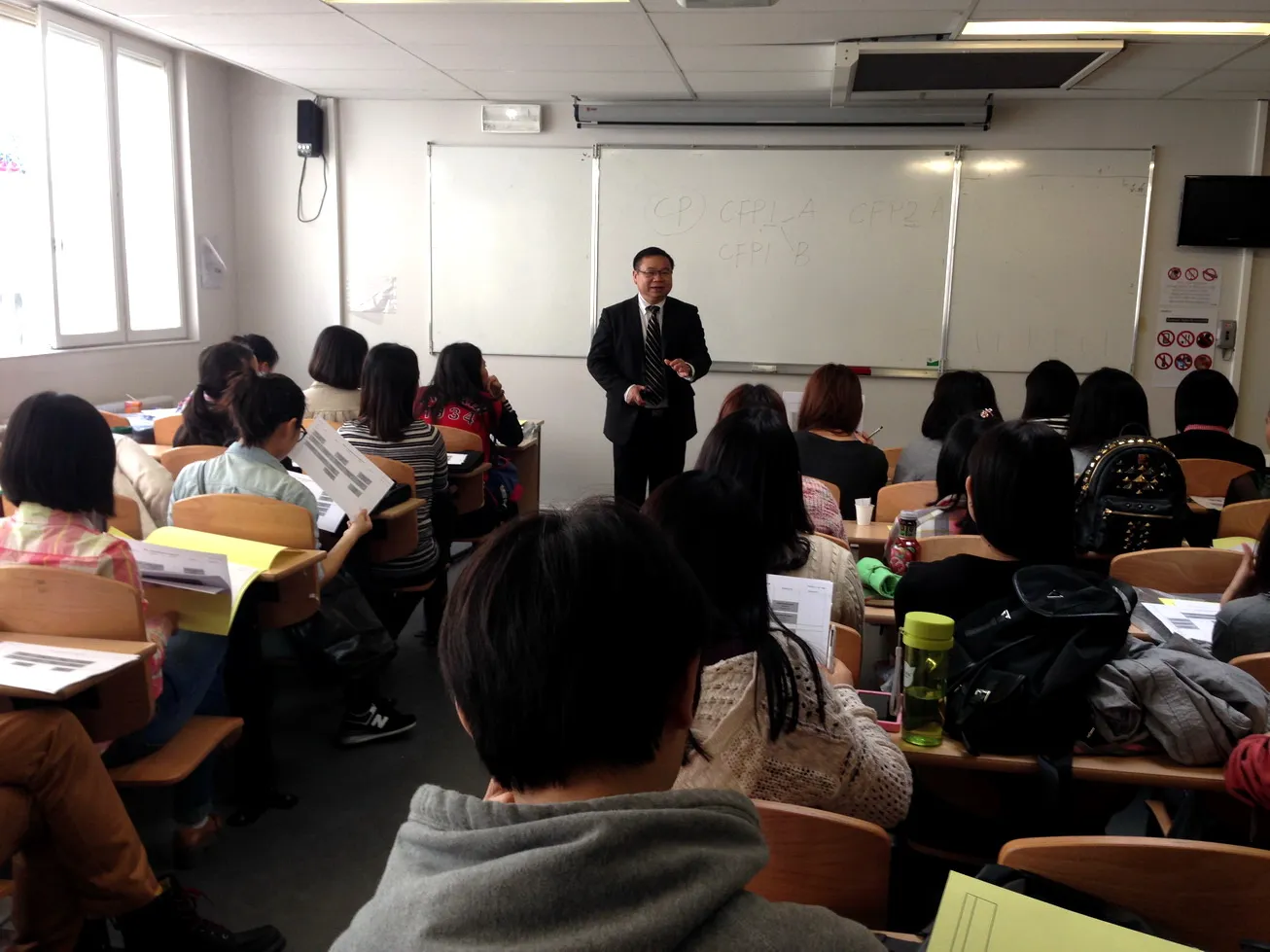 下午3点,开学典礼正式开始。邱博士代表Groupe ESG法中管理学院向2014年秋季法语预科班的同学们表示热烈欢迎。并向同学们详细介绍了Groupe ESG各学院的专业设置,各学院文凭的种类及其在中国的认证情况。