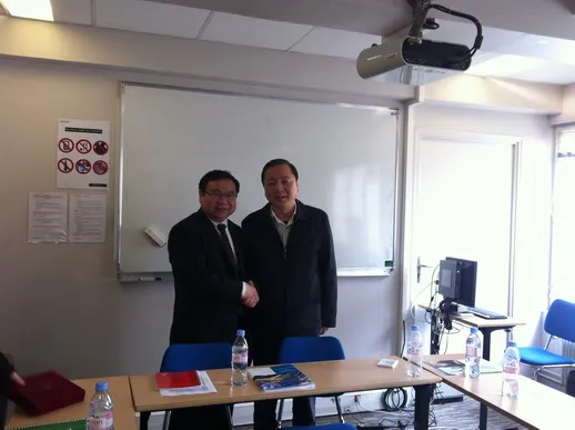 乔治.尼尔丹博士首先对李主任及其代表团成员的院长主任们的来访表示热烈欢迎,谈话中尼尔丹博士提及对中国教育未来前景十分看好,希望能进一步加强中法交流。亚洲关系部主任邱秀贤博士详细地为代表团介绍了Groupe ESG集团学院旗下的5所校区及其概况后,双方很快进入了合作项目的洽谈,围绕今后在学生交流、资源共享,设立开办教师培训班、共同合作建立开设学士或硕士实用课程等多个主题进行了广泛深入的交流。