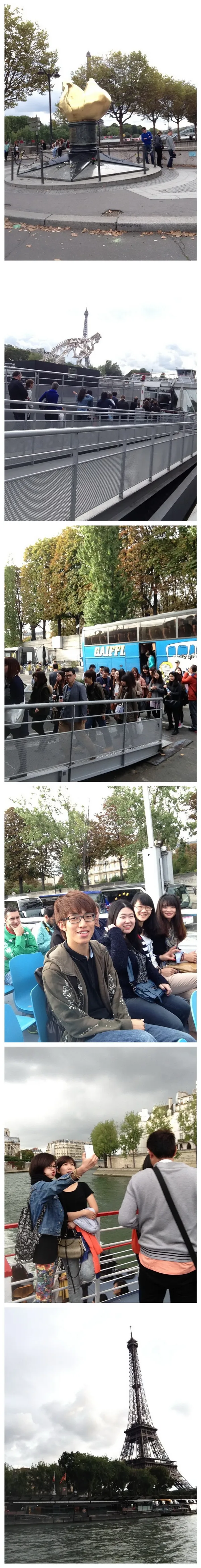 那天,阴天蒙蒙,你开始学会像法国人那样懒懒的享受着这个周末。第一个在巴黎渡过的周末——参加学校的组织的塞纳河游。当你踏上巴黎的METRO,你昏了,你迷路了,你折腾了1个多小时才到塞纳河的地铁站;你疯了,因为同学们就在离你100m桥的对岸,但你却人生地不熟的拿着手机的导航摸不清东南西北地按着红色的终点,来回来回地打转……但是,我想告诉你:一切都值得。就像你当初为了要来法国拼了一切青春的努力,最终你到达了,而今天你到了所有人梦寐的塞纳河!