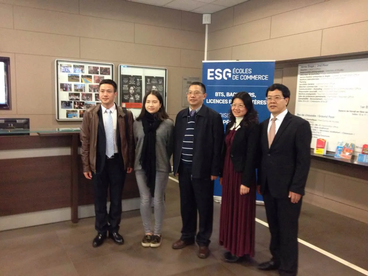 以职教研究所所长李建求教授为团长的深圳职业技术学院代表团一行4人今天上午到访思图迪教育联盟ESG学院集团。在Saint Ambroise校区,受到ESGCI国际商贸学院、ESGF金融学院及ESGRH人力资源管理学院院长奥利维埃.赛尔克先生、亚洲关系部主任兼、法中管理学院院长邱秀贤博士、亚洲事务主管兼副院长吉昕老师的热情接待。